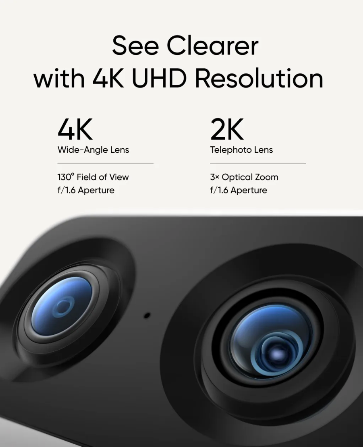 - Tvöföld linsa með 4K og 2K: Færð nákvæma og skýra mynd. Jafnvel í lítilli birtu.